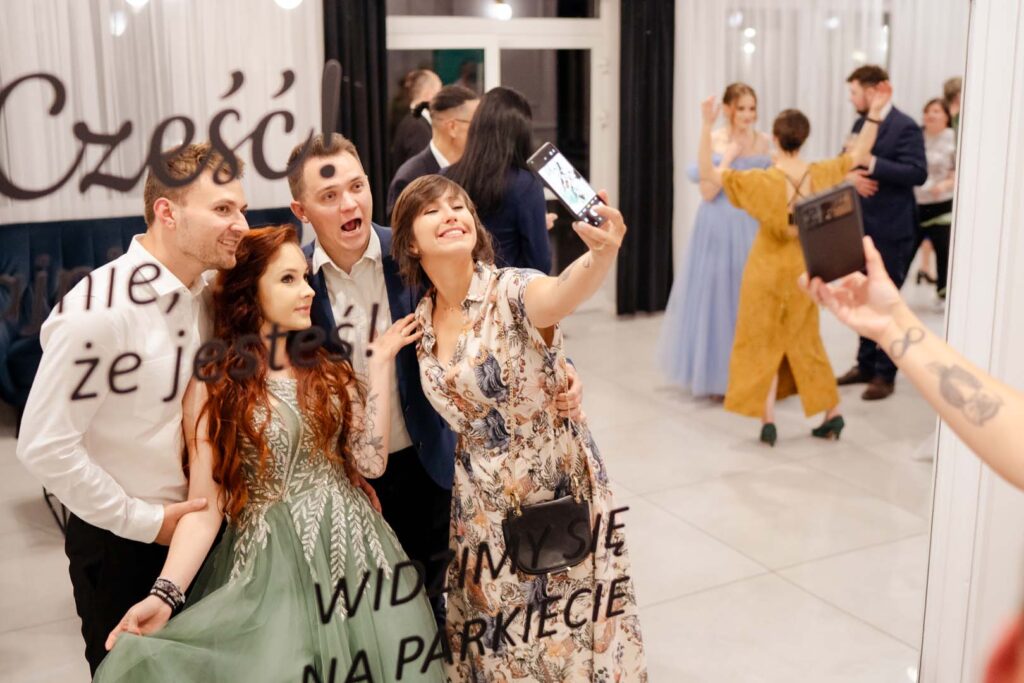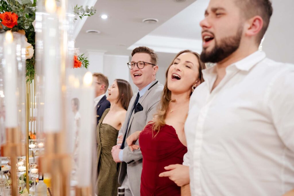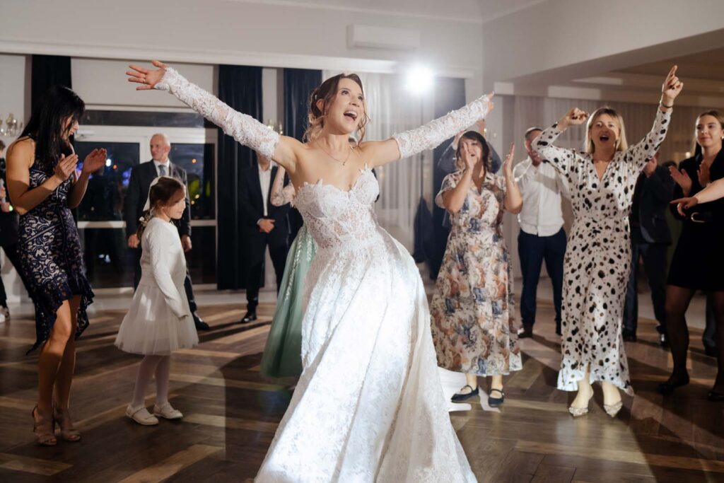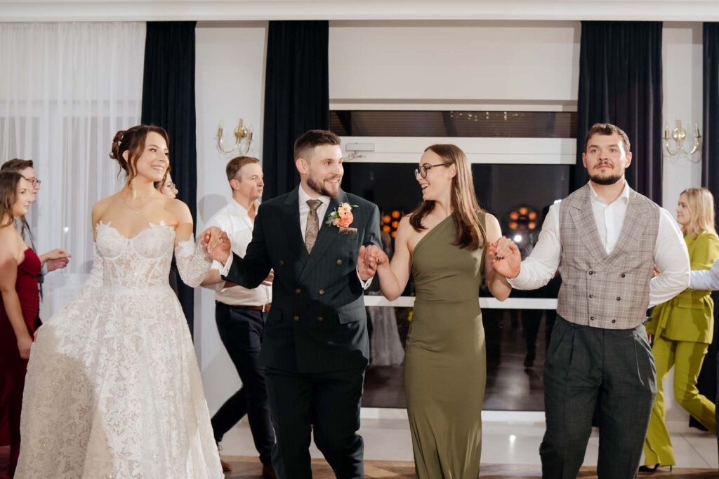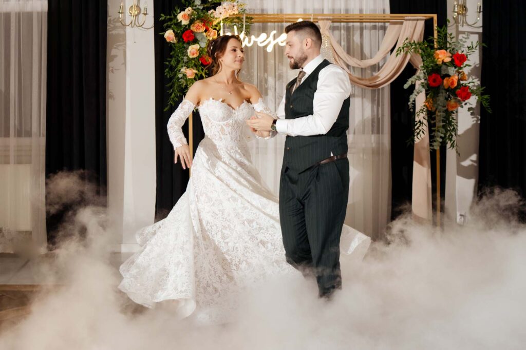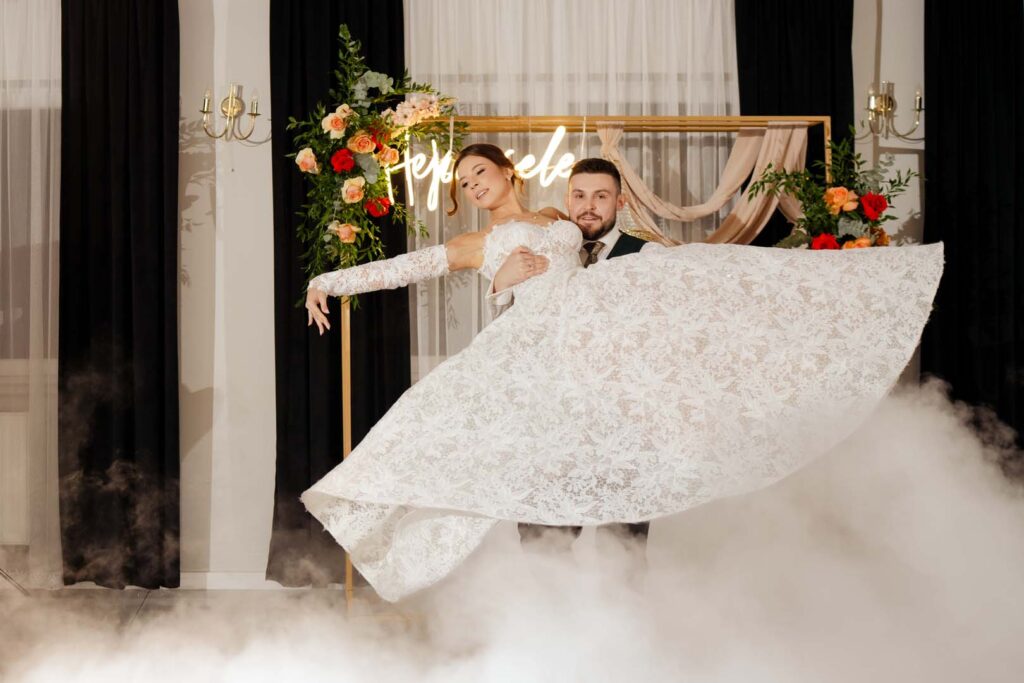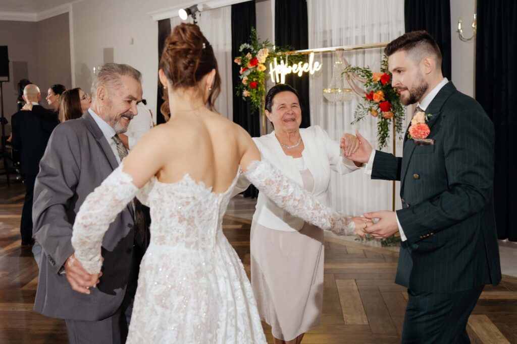 Wesele natomiast było prawdziwym świętem radości. Parkiet ani na chwilę nie pustoszał, a DJ zadbał o świetną muzykę i doskonałą zabawę 🎶🕺💃. Podczas krótkiej przerwy zrobiliśmy mini sesję zdjęciową, która była dobrym odprężeniem i okazją do pobycia tylko we dwoje, no może we troje 😉 Daję słowo, że starałem się być jak najmniej angażujący 🙂
