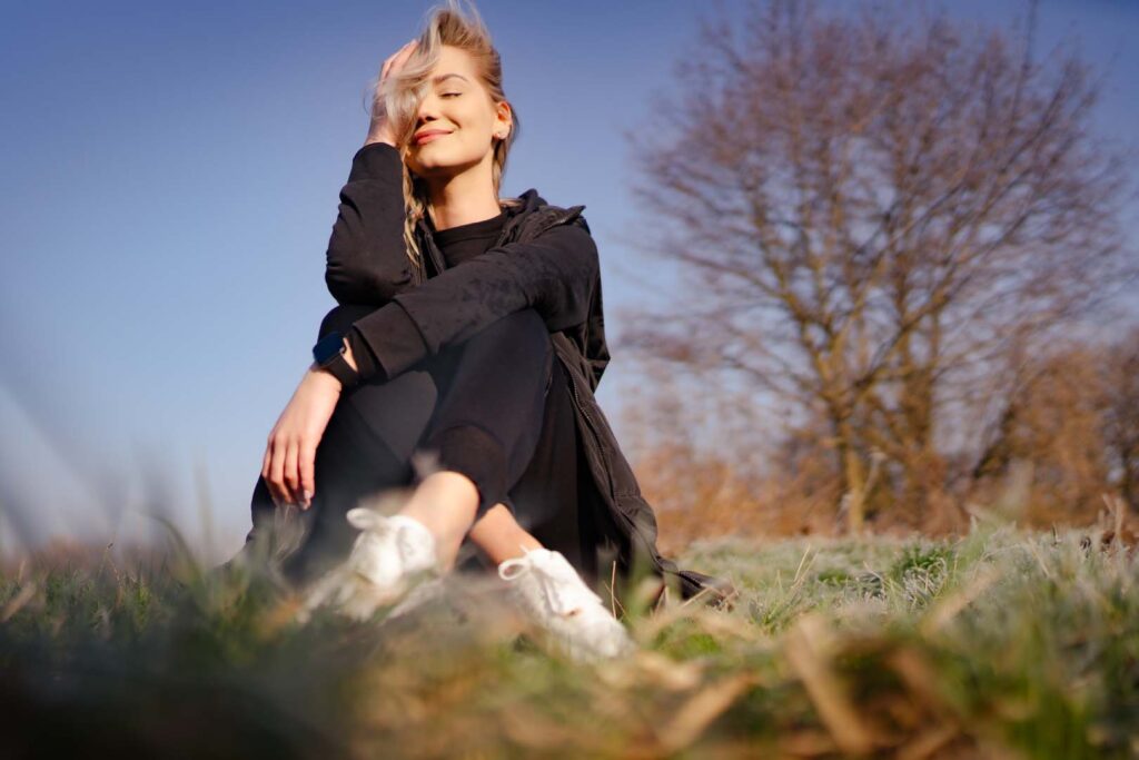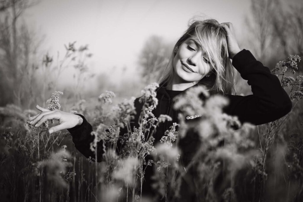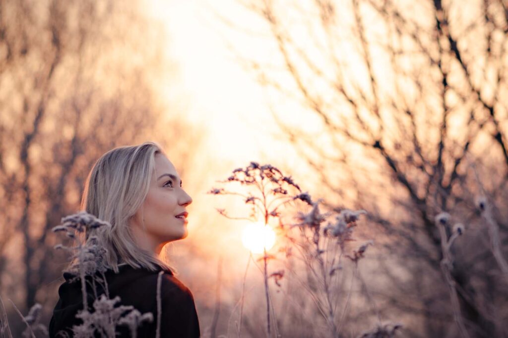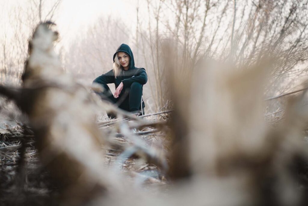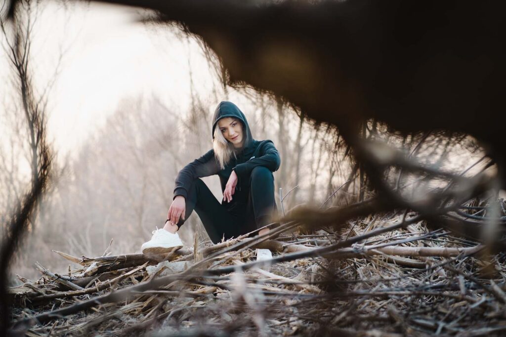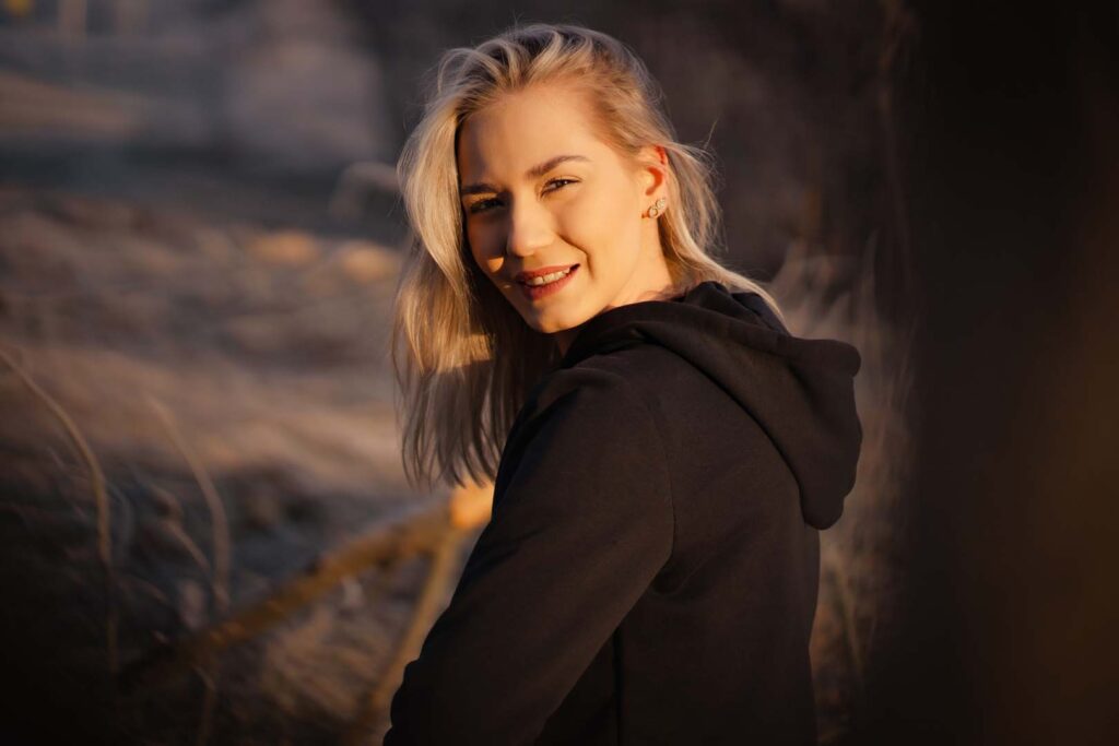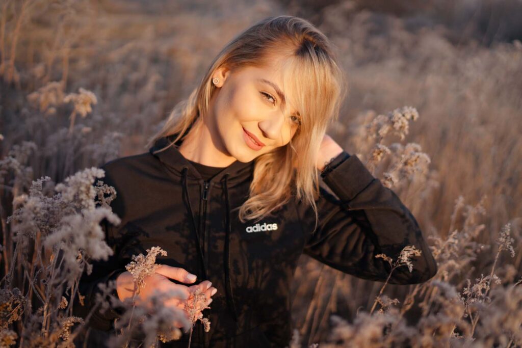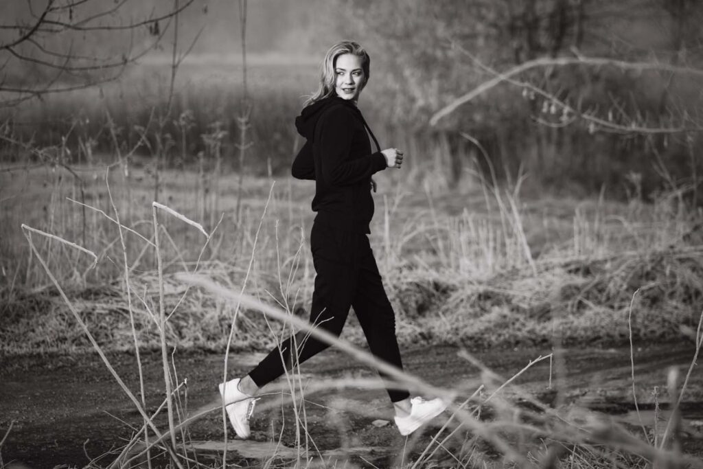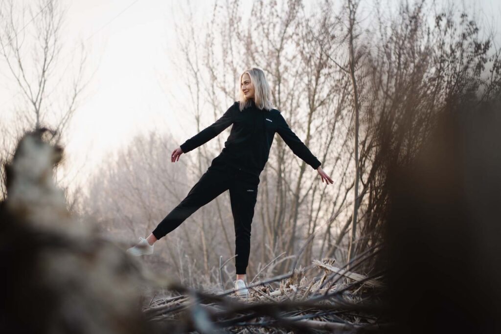 Sesja kobieca o wschodzie słońca ma w sobie coś niezwykłego. Na trawie błyszczał szron, który dodał zdjęciom wyjątkowego uroku i lekko bajkowego klimatu. Cały plan zdjęciowy przybrał formę treningu biegowego. Weronika wybrała dres 👟🧥, idealnie wpisujący się w naturalny, sportowy charakter sesji.